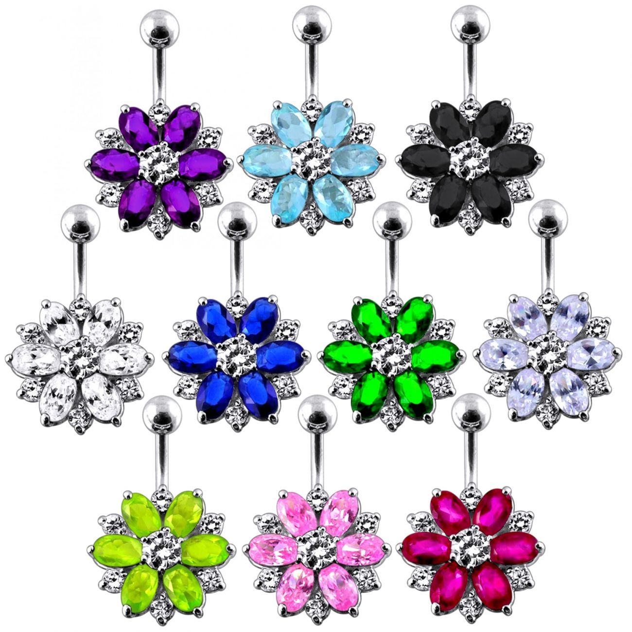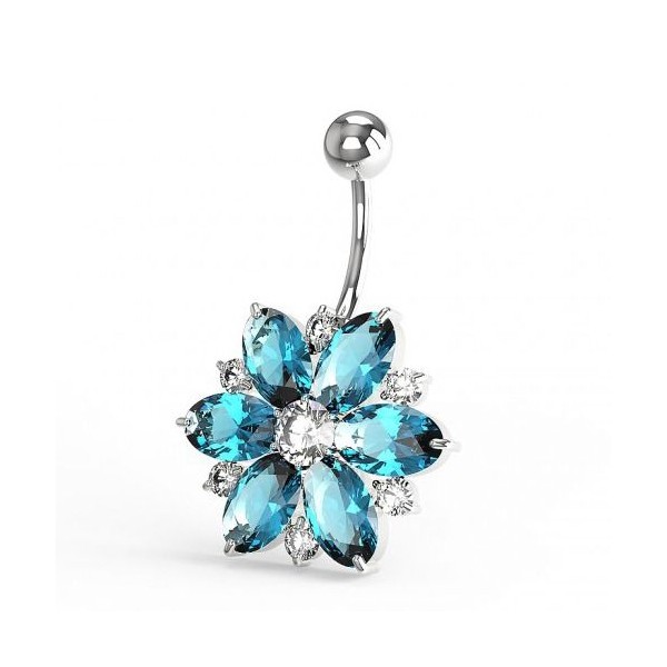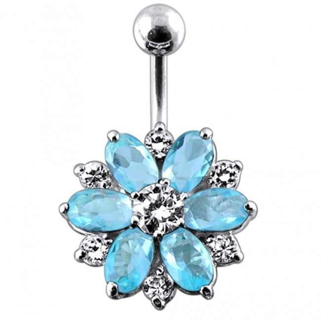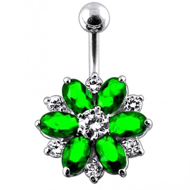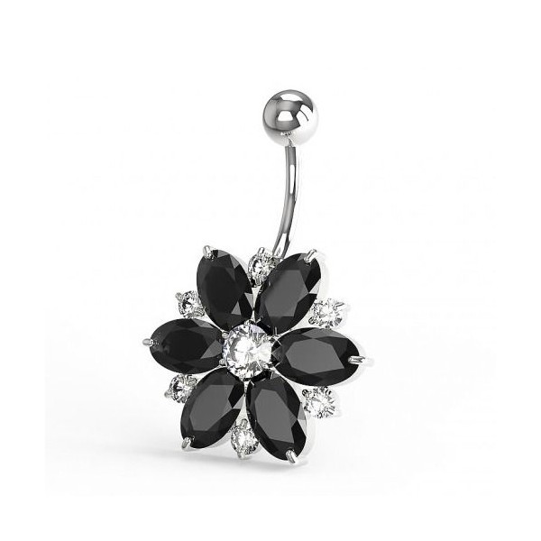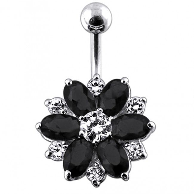 Stříbrný piercing do pupíku - kytička (čirá/růžová)