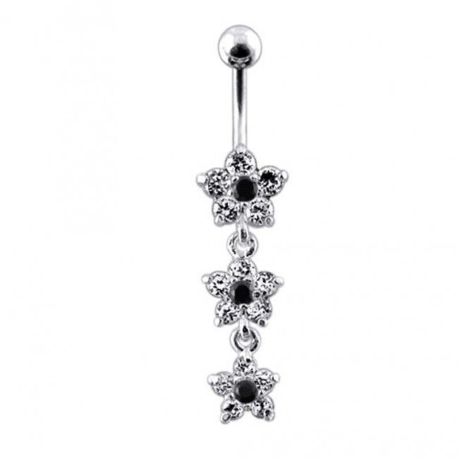 Stříbrný piercing do pupíku - kytičky