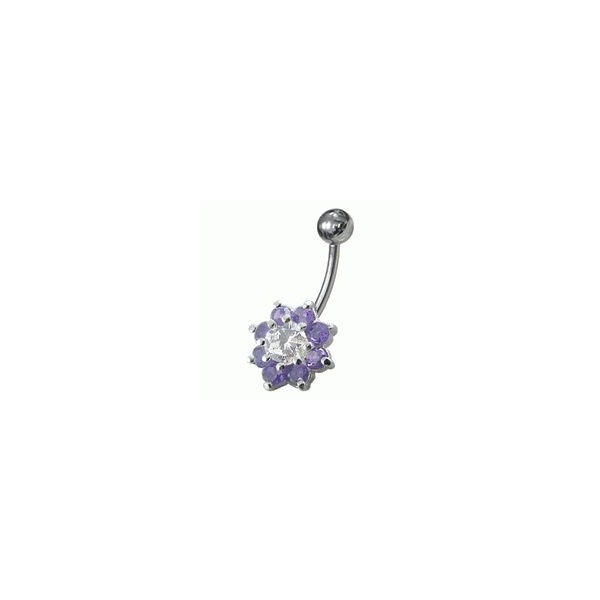 Stříbrný piercing do pupíku zdobený kytičkou se zirkony