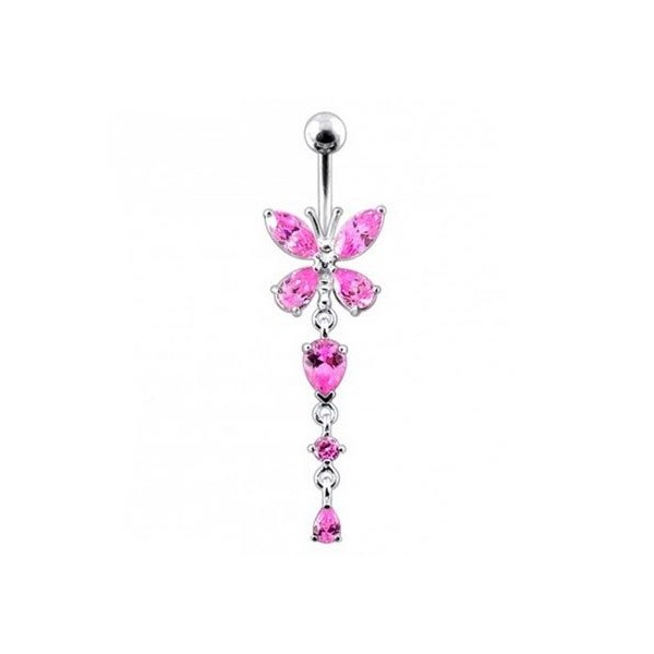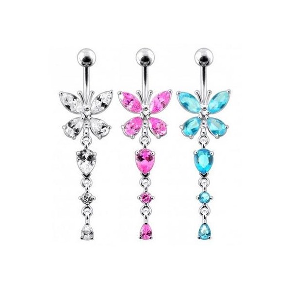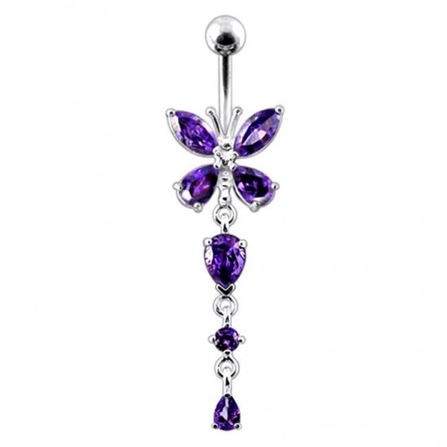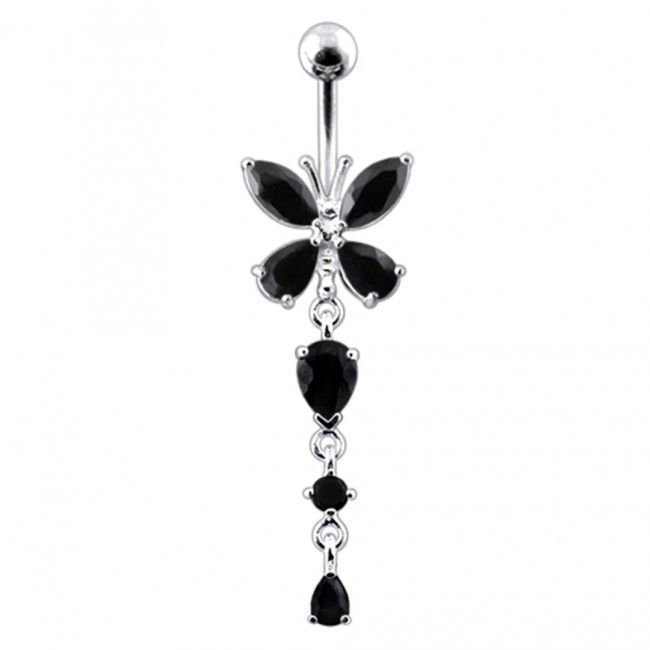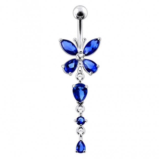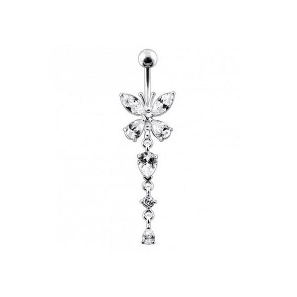 Stříbrný piercing do pupíku - motýlek (čirá)