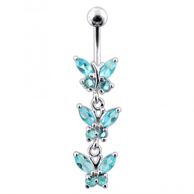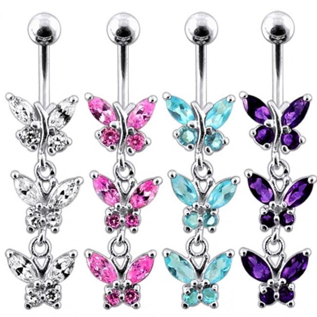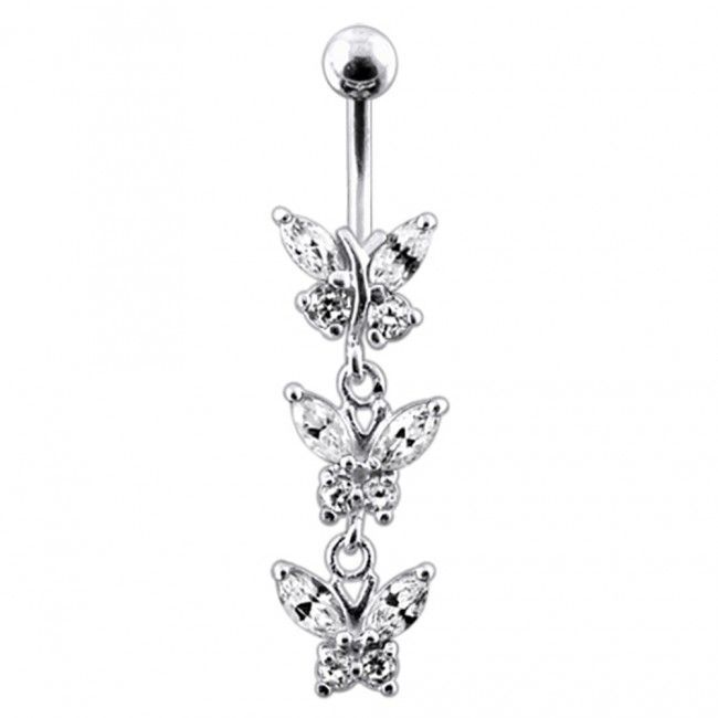 Stříbrný piercing do pupíku s motýlky (růžová)