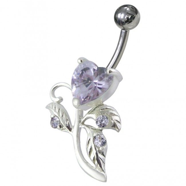 Stříbrný piercing do pupíku s motivem srdíčka