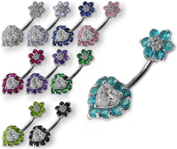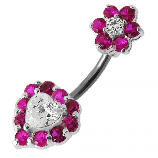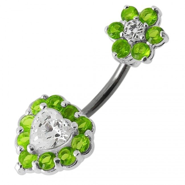 Stříbrný piercing do pupíku s kamínky