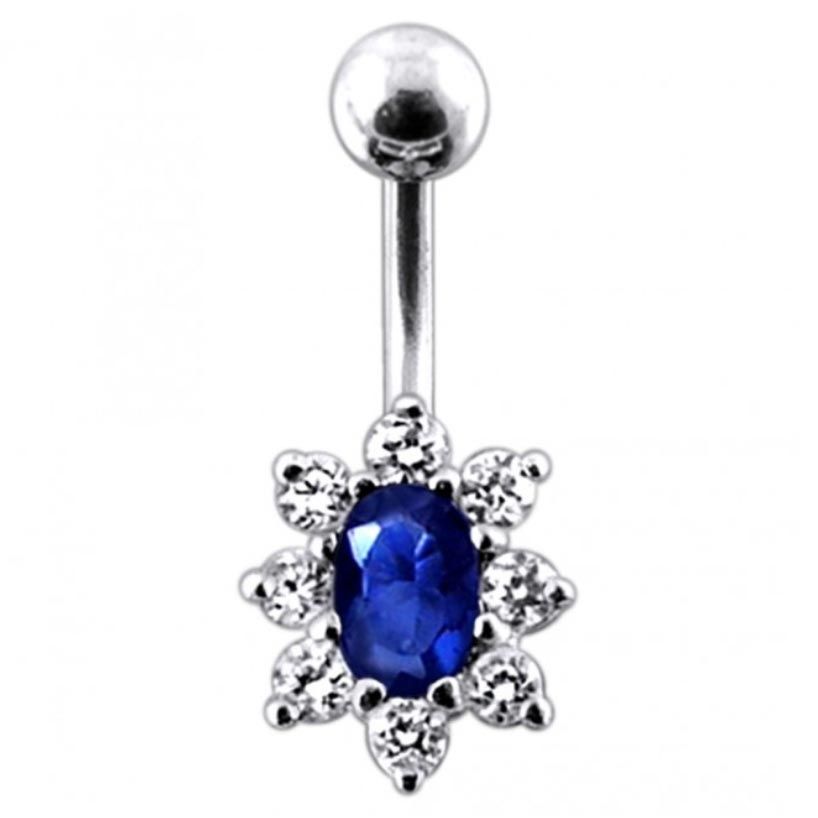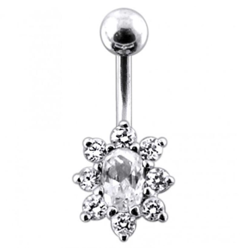 Stříbrný piercing do pupíku zdobený kubickými zirkony