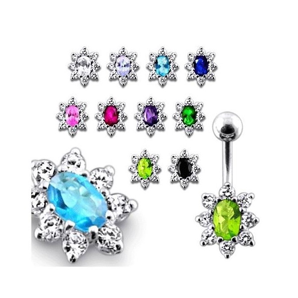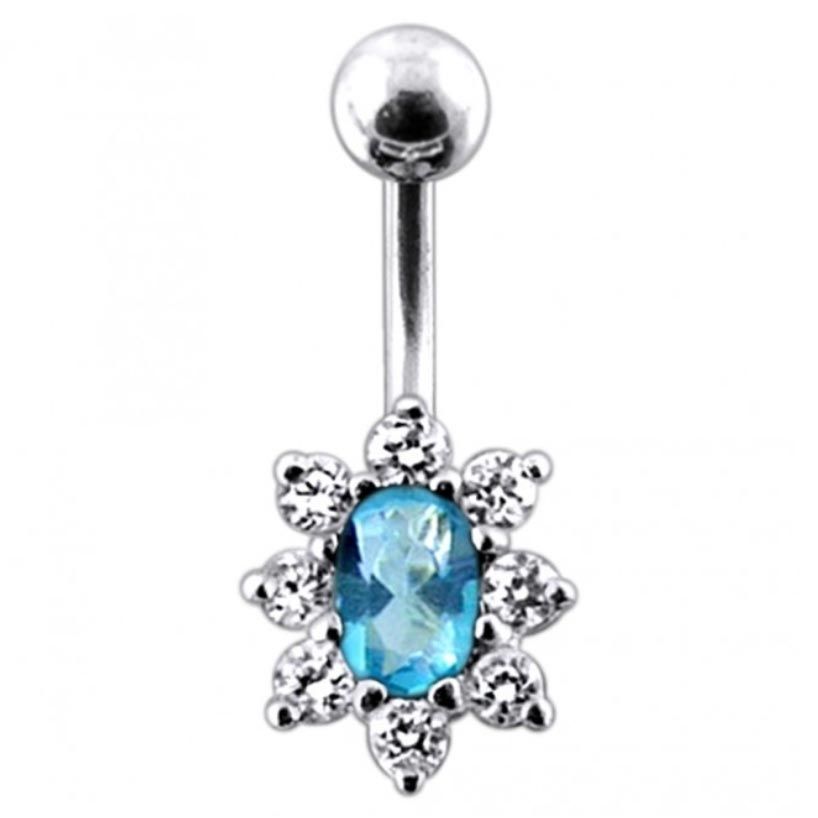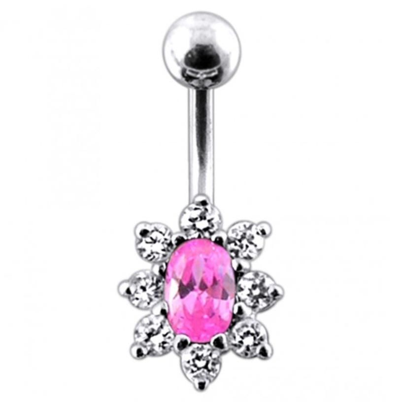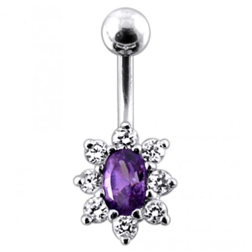Stříbrný piercing do pupíku zdobený kubickými zirkony