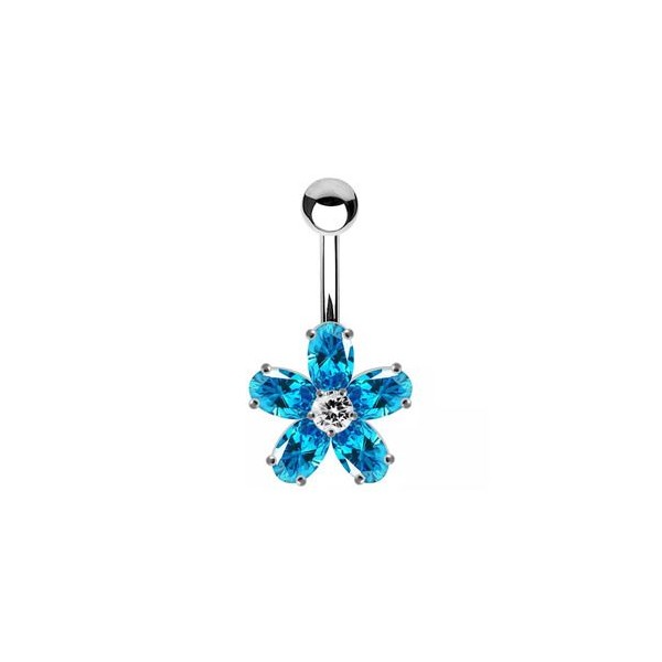 Stříbrný piercing do pupíku s ozdobnou částí ve tvaru květiny
