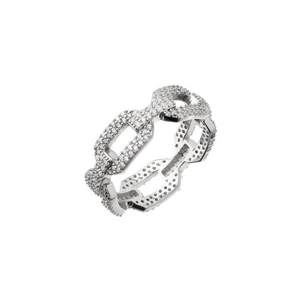 Luxusní stříbrný prsten v zajímavém designu propojených oček, která jsou bohatě zdobena zirkony čiré barvy
