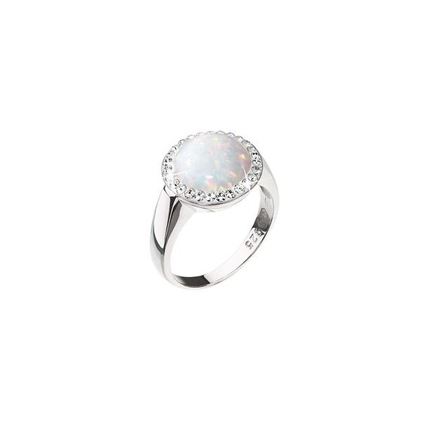 Stříbrný prsten se syntetickým opálem a krystaly Preciosa