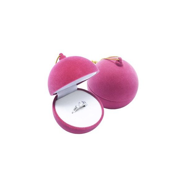 Semišová vánoční dárková krabička ve tvaru ozdobičky - kuličky na stromek růžové barvy