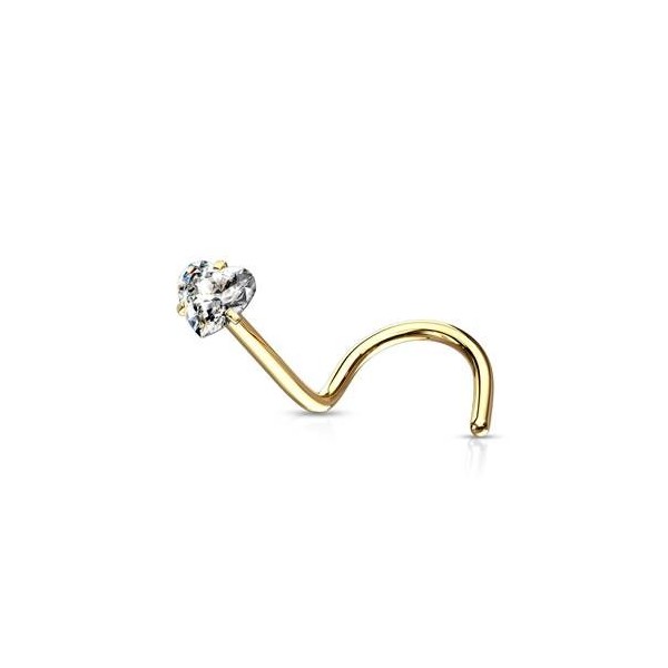 Zahnutý piercing do nosu zdobený čirým zirkonem ve tvaru srdíčka
