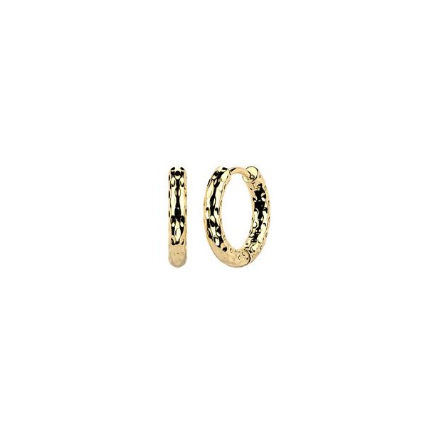 Pozlacené ocelové náušnice ve tvaru kruhů zdobených vymačkávaným strukturovaným dekorem