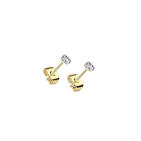 Zlacené stříbrné náušnice zdobené 3 mm zirkony čiré barvy