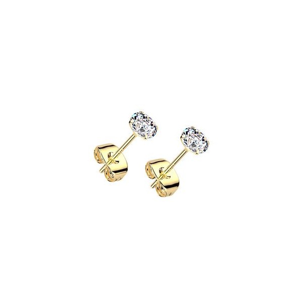 Zlacené stříbrné náušnice na puzetu - zirkony 4 mm
