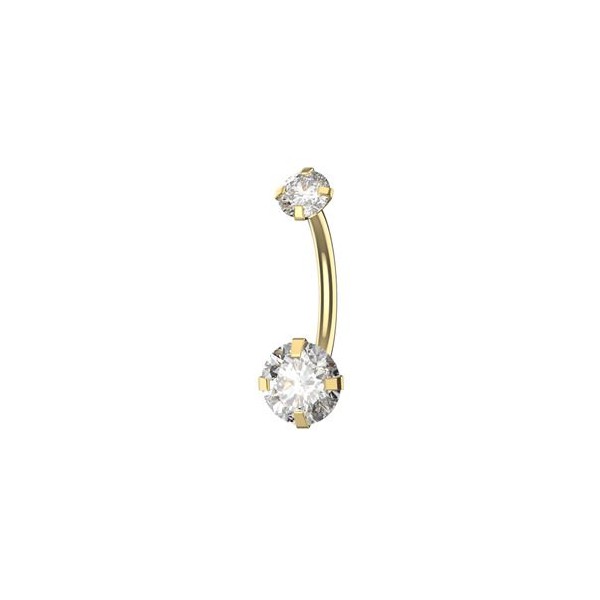 Zlacený ocelový piercing do pupíku s kulatým zirkonem