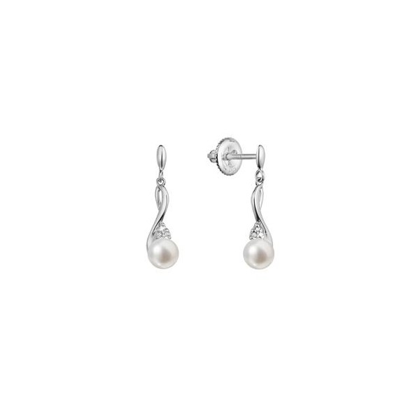 Originální šperky (15473) > Náušnice (3468) > Perlové náušnice (236) > Zlaté 14 karátové náušnice visací bílé zlato s říční perlou a brilianty
