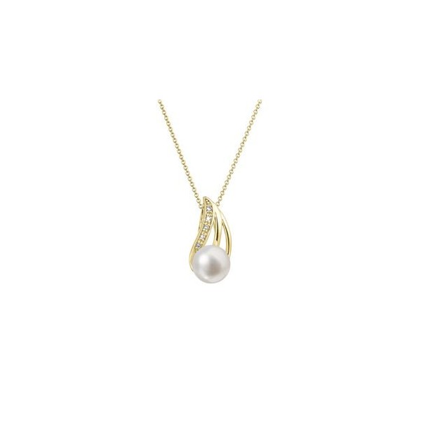 Originální šperky (15443) > Náhrdelníky (1163) > Perlové náhrdelníky (95) > Zlatý 14 karátový náhrdelník s bílou říční perlou a brilianty